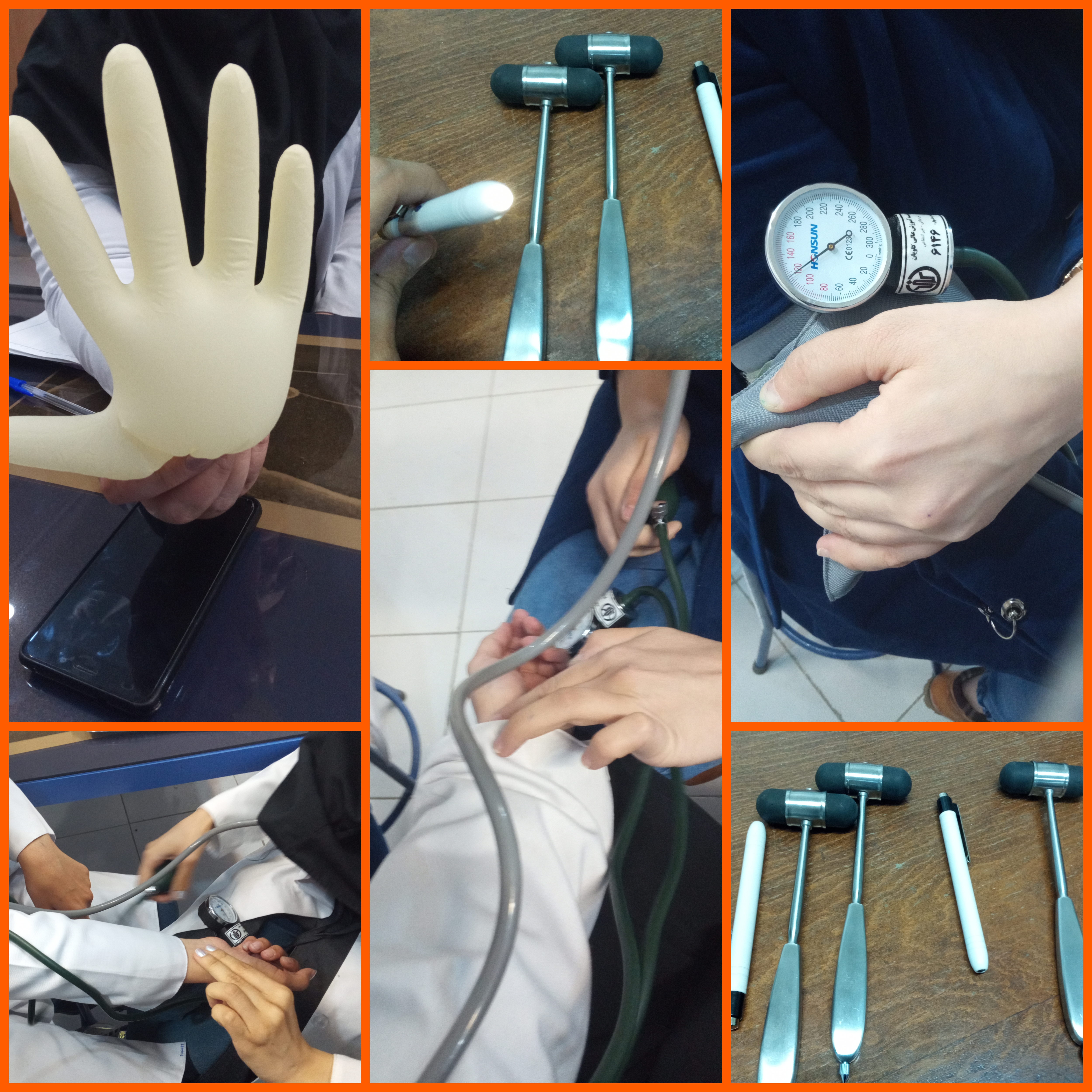 ۲) انجام آزمایشهای رفلکس های نخاعی کشش زانو،مردمک چشم ،عضلات دوسر و سه سر بازو،تاندون آشیل و بابینبسکی توسط چراغ قوه و چکش پزشکی